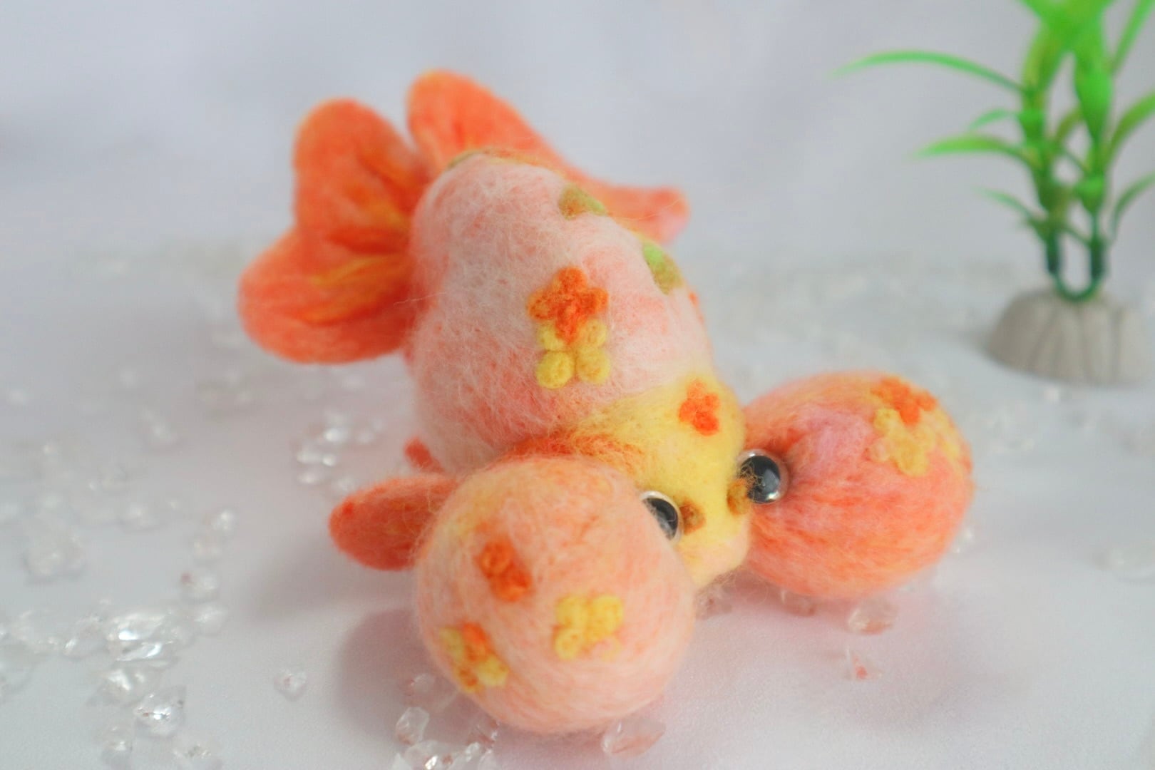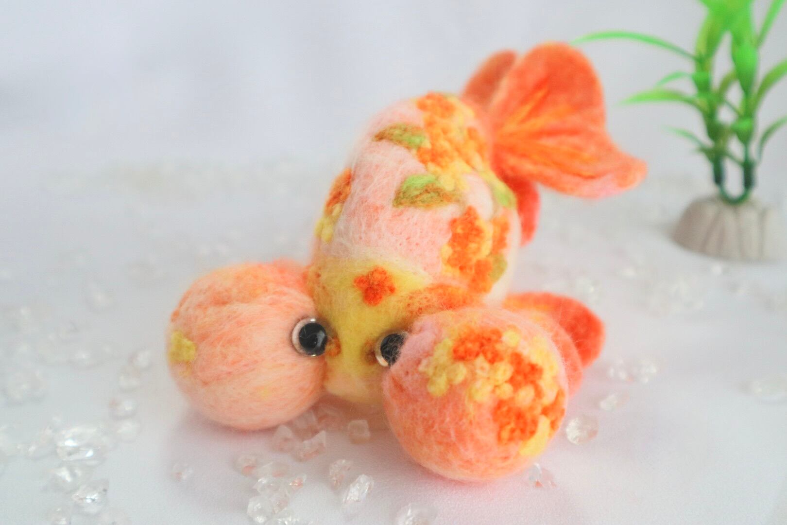黄色とオレンジの金木犀のような模様が散りばめられた可愛い水泡眼です。