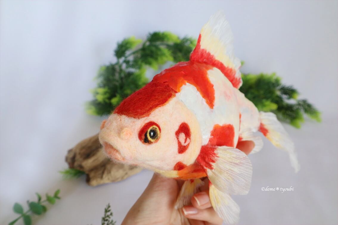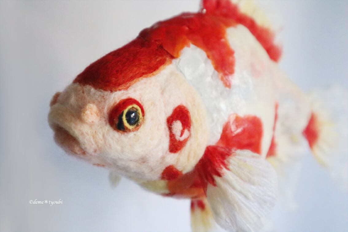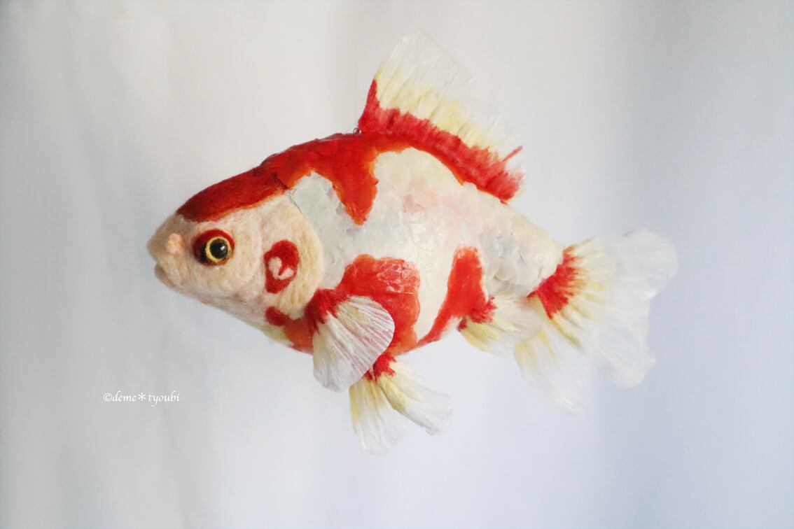 鱗の技法が難しい作品なので同じものは今後も作りません、1点限りの金魚です。