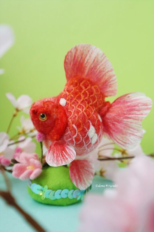 金魚は夏の風物詩ですが、吊るし雛もそうですが、春にもよく似合うなぁと感じます^^