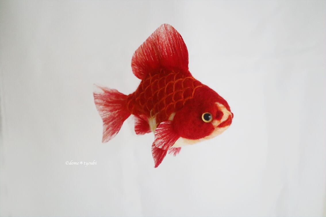 鮮やかな赤が美しい更紗和金です。